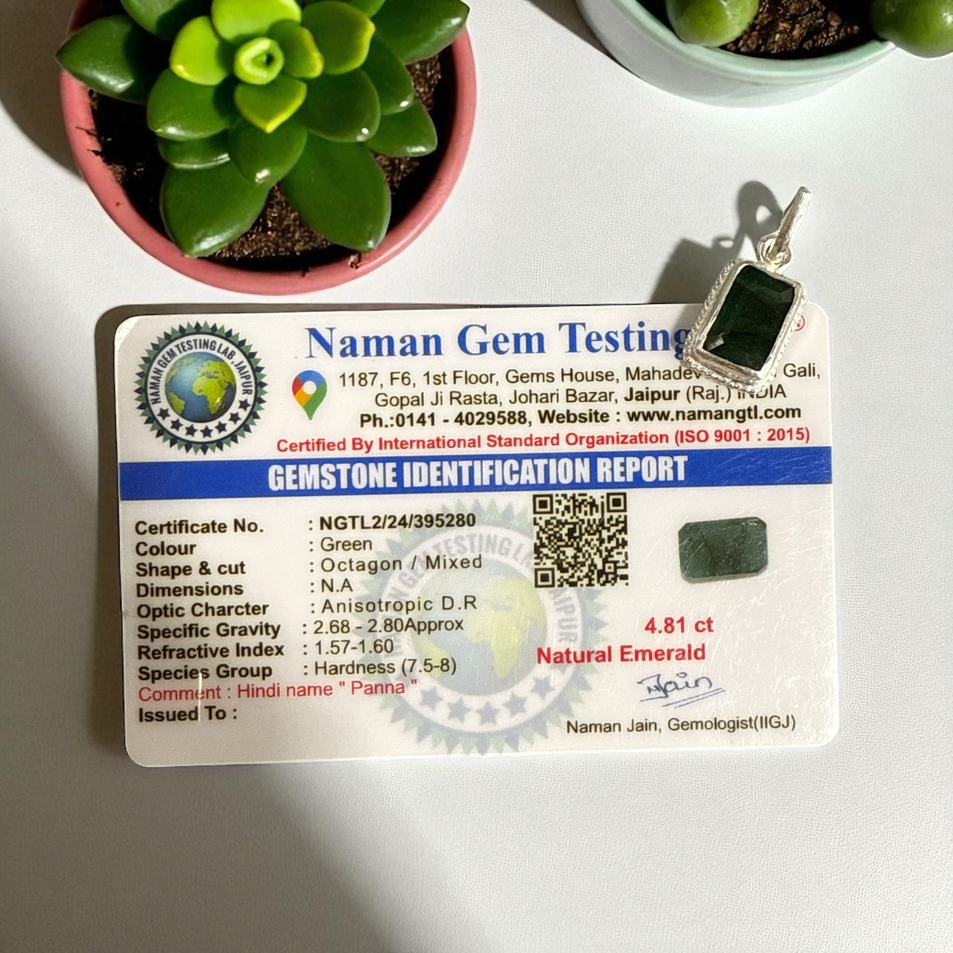 Natural Emerald (Octagon Shape) with silver (4.81 Ct)